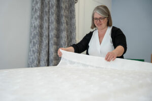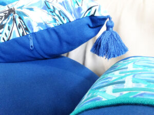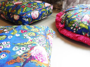 > décors de lit : coussins de toutes tailles et formes, couvre-lit, courtepointe, édredon, ciel de lit, dais…